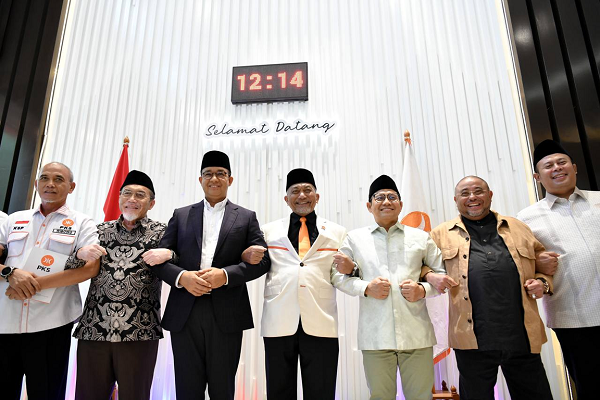 Capres dan cawapres nomor urut 01 Anies Baswedan dan Muhaimin Iskandar bersama pimpinan PKS